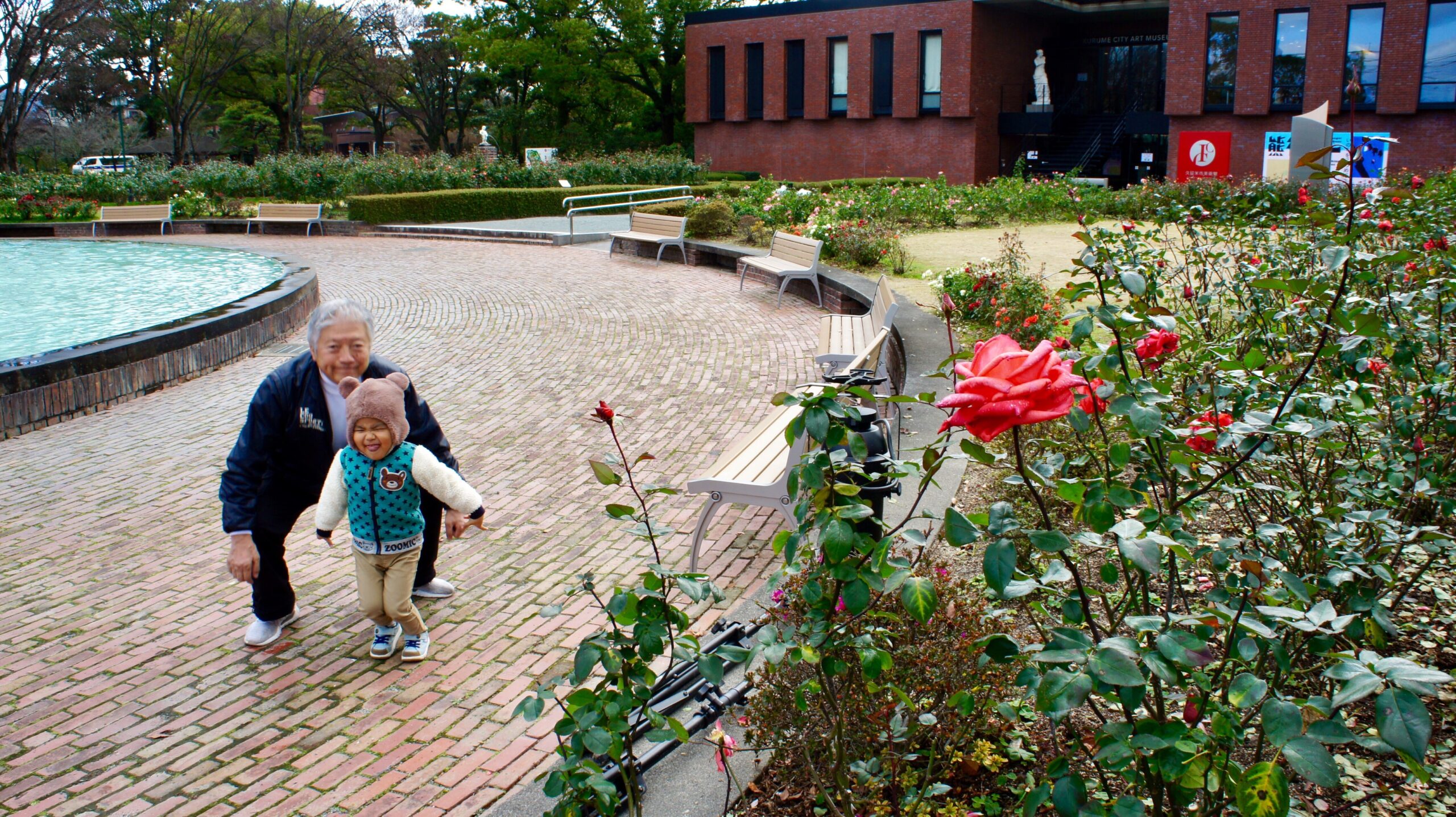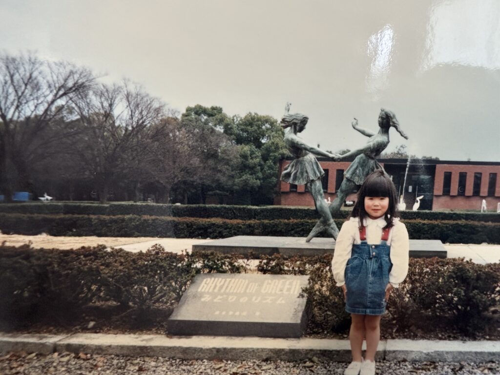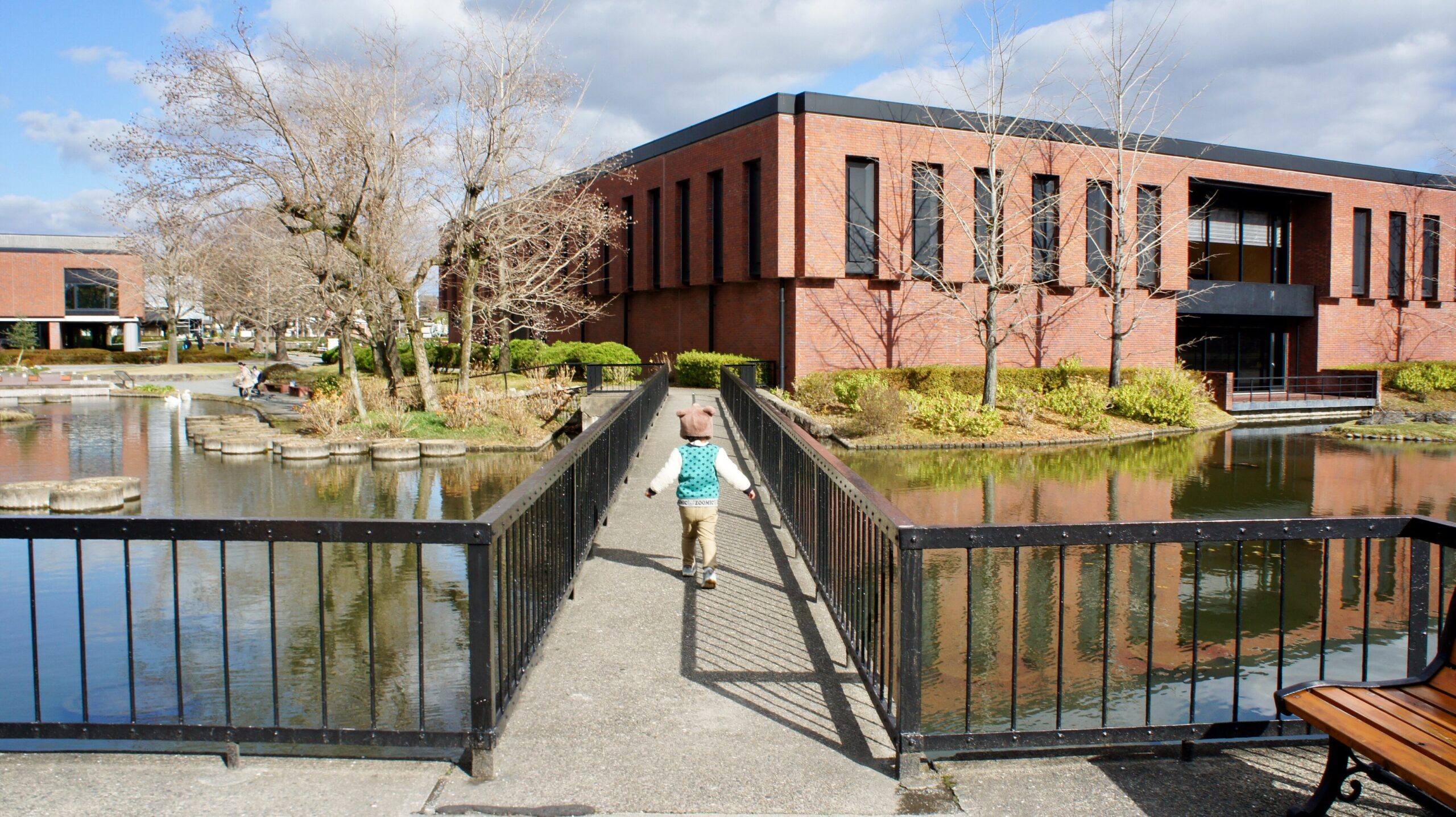 大学で出会った久留米出身の彼が、自慢の場所を案内してくれました。石橋文化センター、美術館横の池にかかる橋の上でのスナップです。